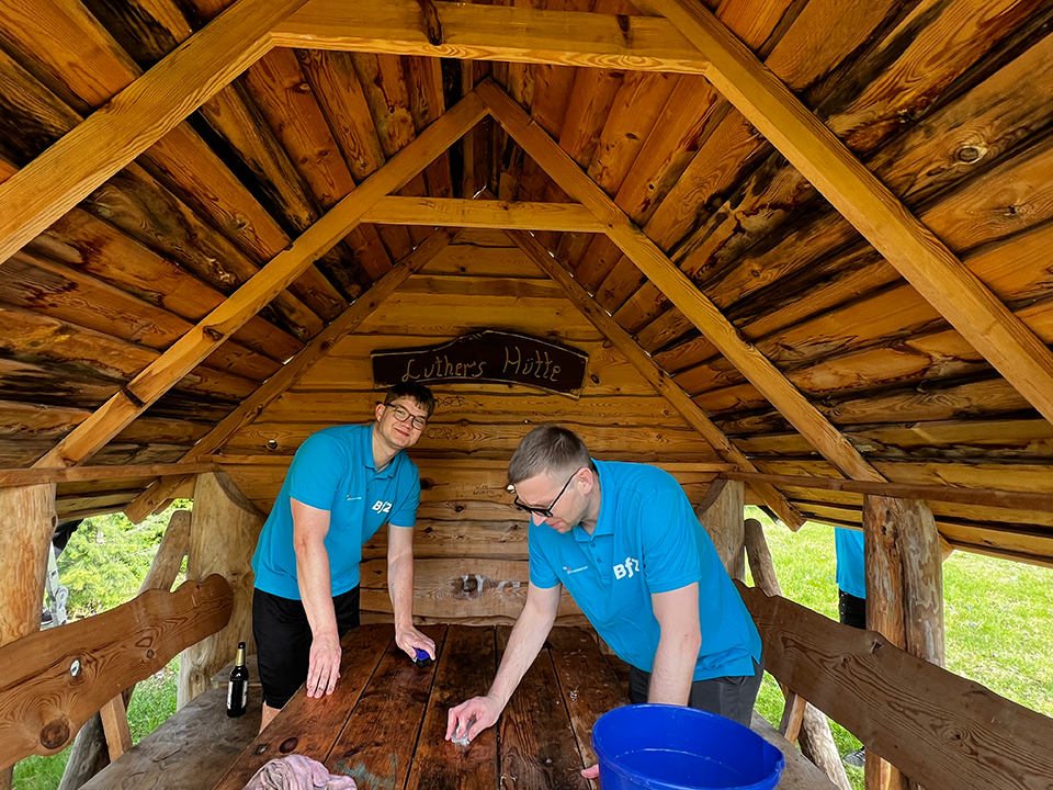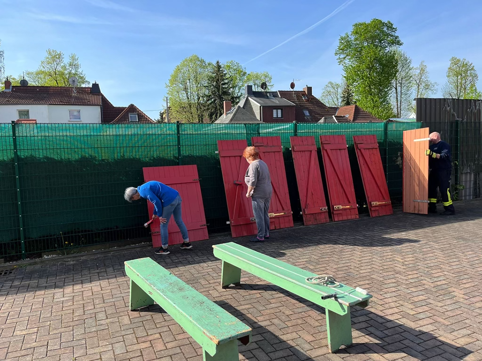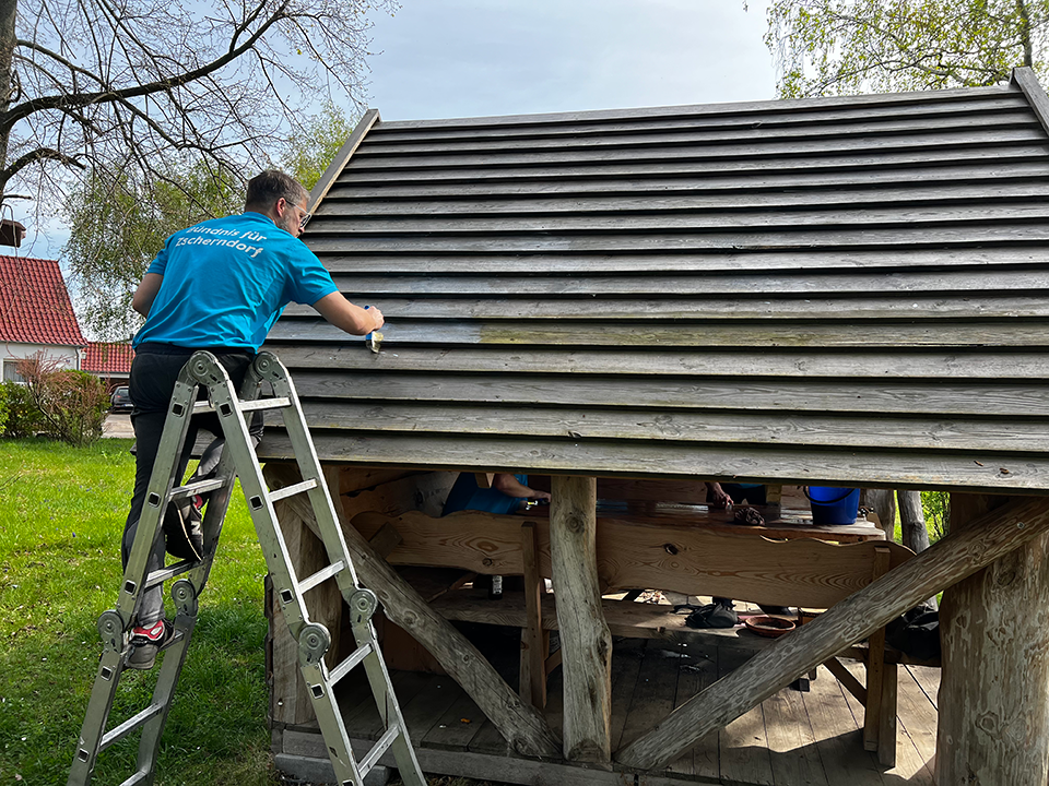 Zum Frühjahrsputz kamen bei Sonnenschein wieder viele fleißige Helfer. Wir haben gesägt, betoniert, gehämmert, gestrichen, geölt, gewischt, geputzt, Müll gesammelt, gekehrt und gepflanzt. Wenn viele Hände mit anpacken, schafft man in kurzer Zeit richtig viel.